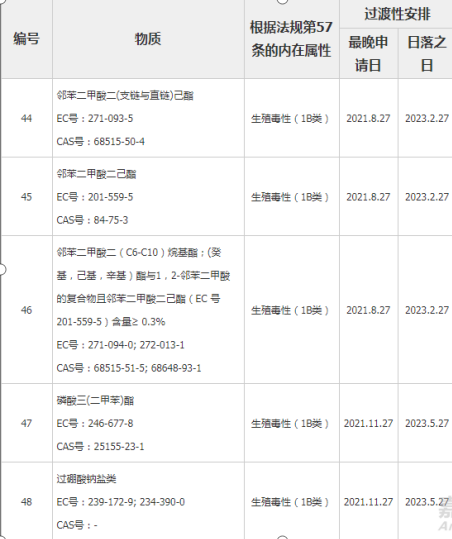 2020年2月7日,歐盟官方公報發布REACH法規修訂案REGULATION (EU) 2020/171,正式修訂REACH法規附件XIV,新增11項授權物質。至此,授權物質更新至共計54項。該法規從歐盟官方公報發布第20天開始生效。