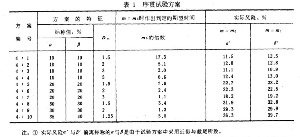 mo=規(guī)定可接受的平均無(wú)故障時(shí)間;a=生產(chǎn)方風(fēng)險(xiǎn);B=使用方風(fēng)險(xiǎn);