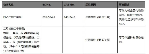 2020年09月01日當地時間,歐盟化學品管理局(ECHA)在其官網發布了第二十四批2項SVHC評議物質,公眾評議將于2020年10月16日結束,相關企業可以在ECHA網站上發表意見。通過評議的物質將作為第24批物質列入SVHC候選清單。以下2項評議物質如被采納,則SVHC將達到211項。