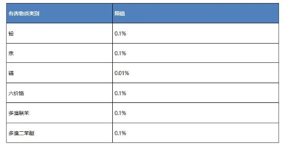 有害物質(zhì)管控清單及對應(yīng)限值如下: